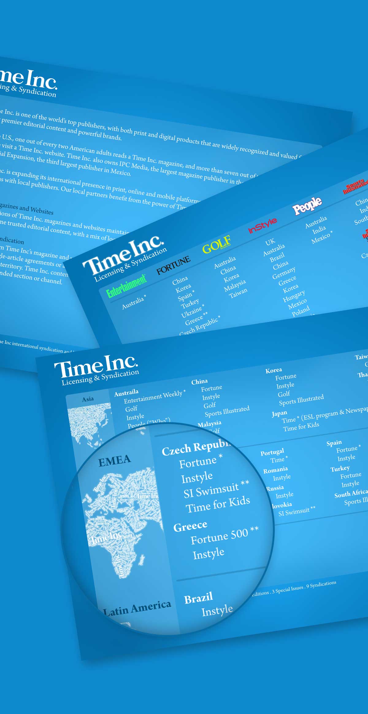 With 21 U.S. and 5 regional magazines on the market, Time Inc. stands as one of the most trusted brands in the world for entertainment, lifestyle, and business. However, the journey never ends for their global collaborations. As such, the licensing & Syndication department at Time Inc. continues to perservere and a document that emobied their goals was created for distribution.